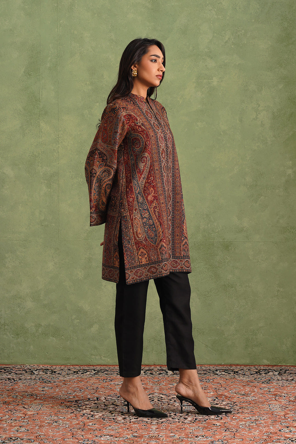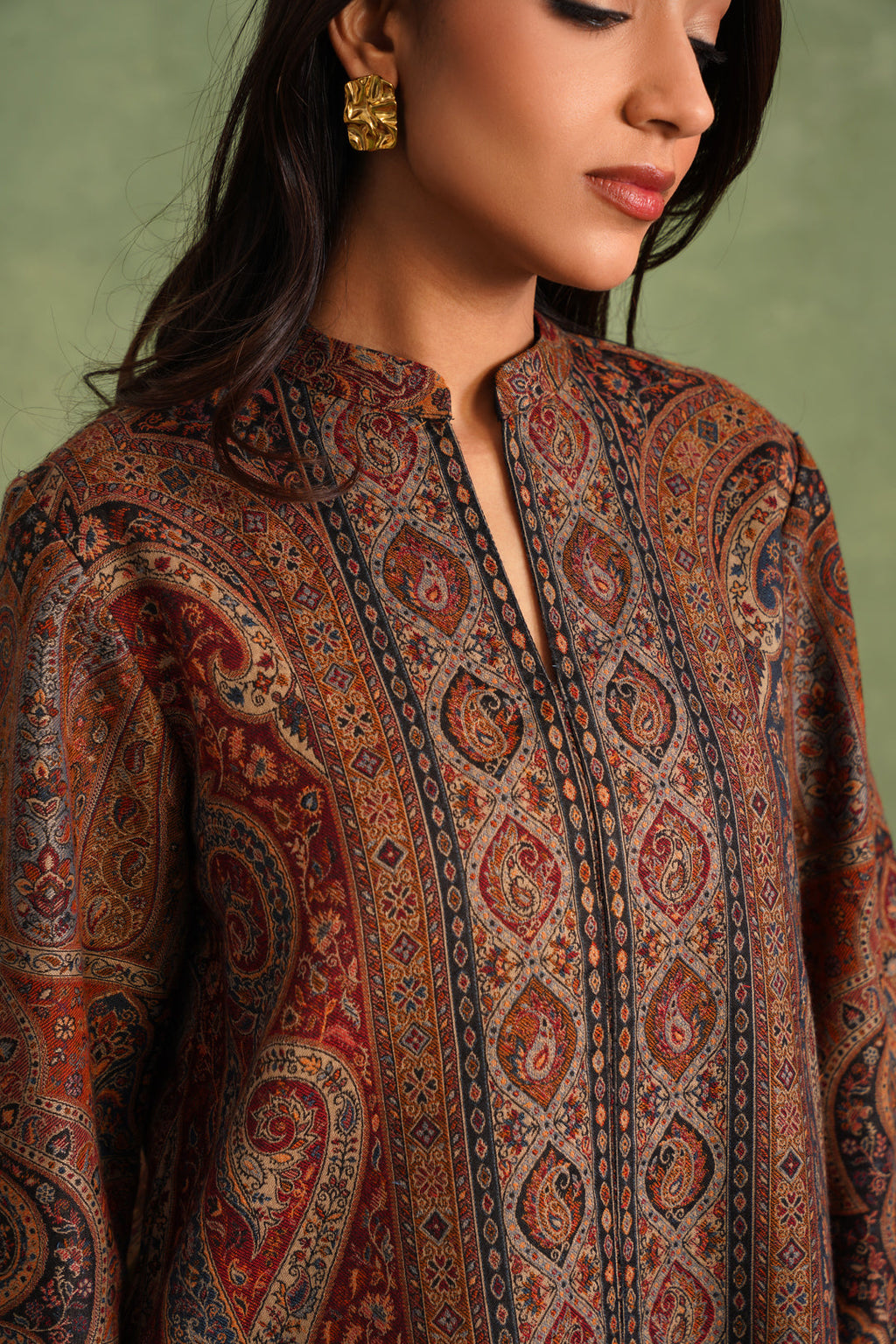 This Woollen Aafreen Kaani Set is laden with eloquent weaves in beautiful hues. This set makes for a versatile must-have. This Kaani Set will provide you with much-needed comfort and warmth this winter season. Order yours now!