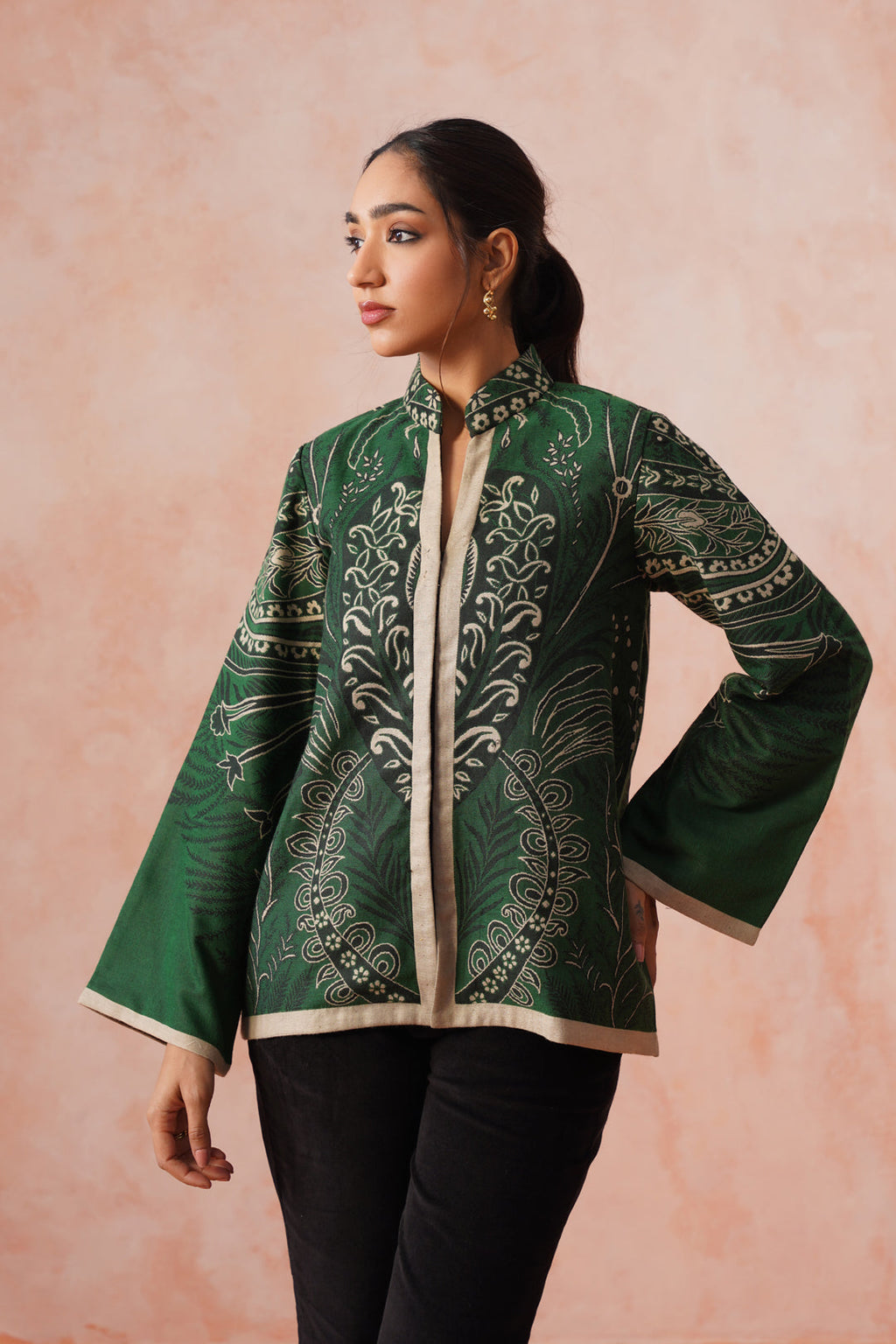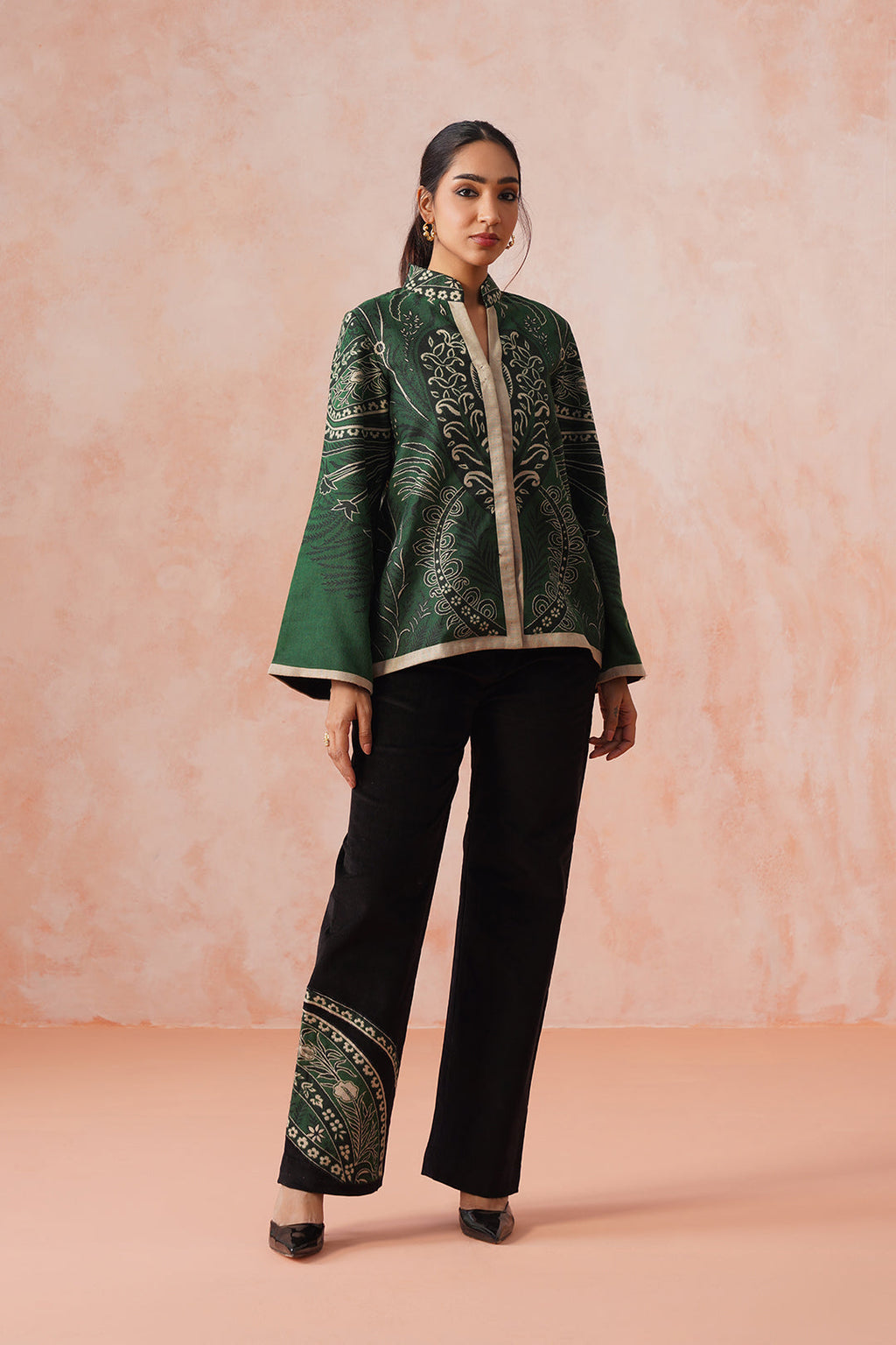 A perfect blend of style and warmth, this Bottle Green Coat Set is crafted for the modern winter wardrobe. The deep-hued coat features a woven abstract design and a structured silhouette, making it both elegant and comfortable for the season.