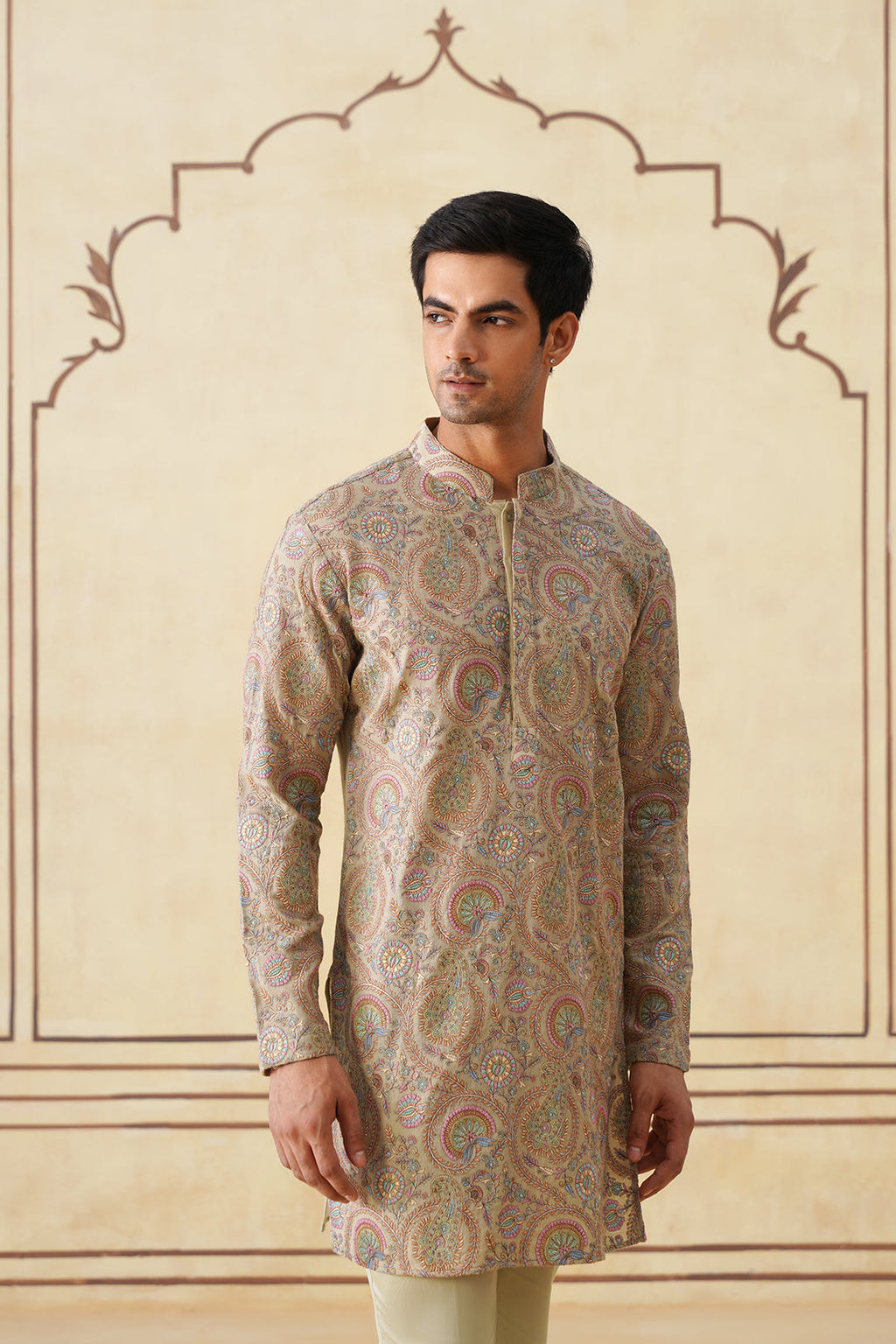 Step into sophistication with this refined ensemble — a perfect balance of tradition and contemporary style. The minimal yet regal touch of the embroidered detail along the neckline elevates the classic kurta, making it versatile for every occasion.