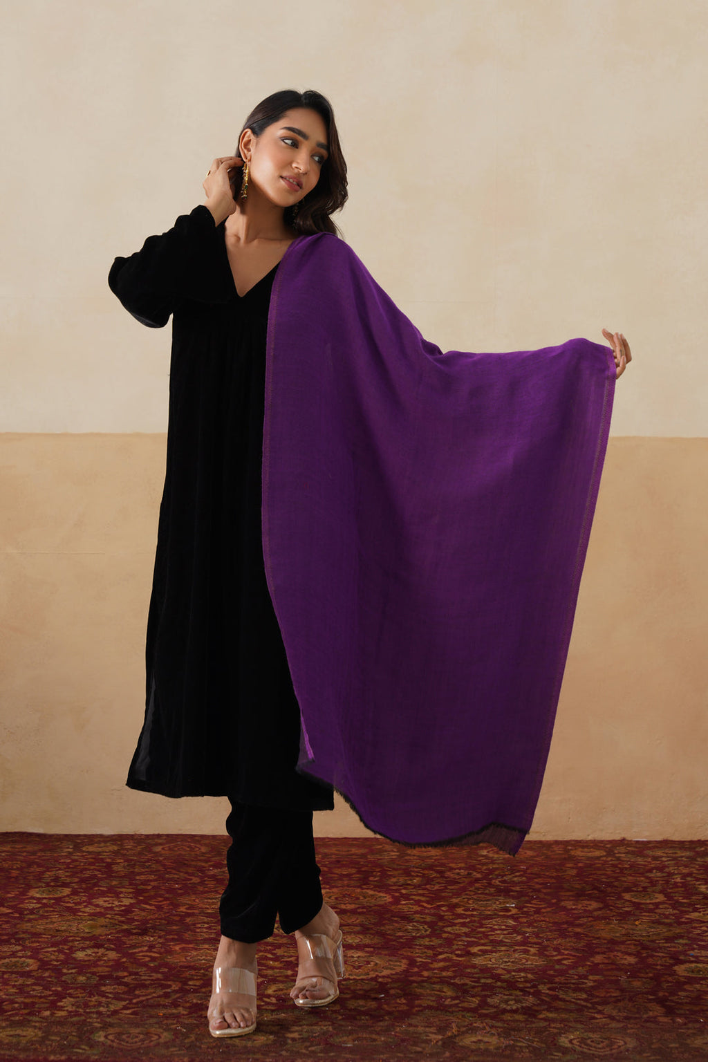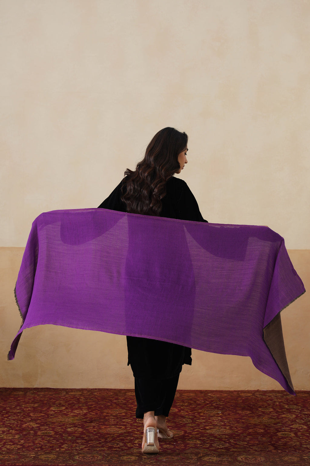 Wrap yourself in timeless elegance with our Royal Wine Stole with Antique Bronze. This 2 side shawl, crafted from fine wool this stole offers a luxurious handfeel that is soft against the skin yet rich in drape. The deep wine hue is elevated by an antique bronze — a perfect balance of heritage and modern sophistication.